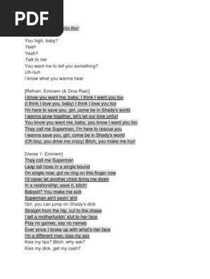 Eminem Dina Rae Cause I know you want me baby I think I want you too I think I love you baby I think I love you too Im here to save you. If you move again Ill beat the shit out of you Eminem Kim Okay Dont make me wake this baby. Were the ones who made you Bridge. Only if I could get a mask to hide the pallor of the pain you gifted Unknown. Rap God Lyrics. Production for the album took place during 2016 to 2017 at various recording studios. Lose Yourself is a song by American rapper Eminem from the soundtrack to the 2002 motion picture 8 Mile.