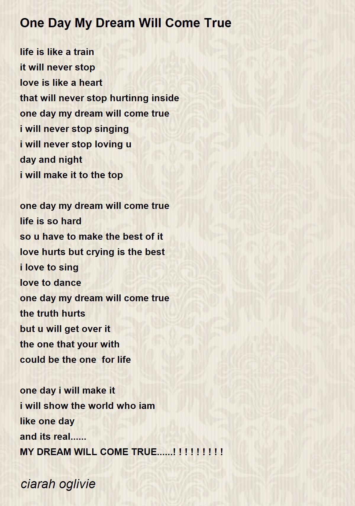 I hope one day my dream comes true. See more ideas about wedding nautical wedding theme dream wedding. See more ideas about words make dreams come true true. One Day all of Your Dreams will Come True. Sep 2 2013 - Explore Carol Brydens board One Day My Dreams Will Come True on Pinterest. About Press Copyright Contact us Creators Advertise Developers Terms Privacy Policy Safety How YouTube works Test new features Press Copyright Contact us Creators. One Day My Dreams Will Come True.